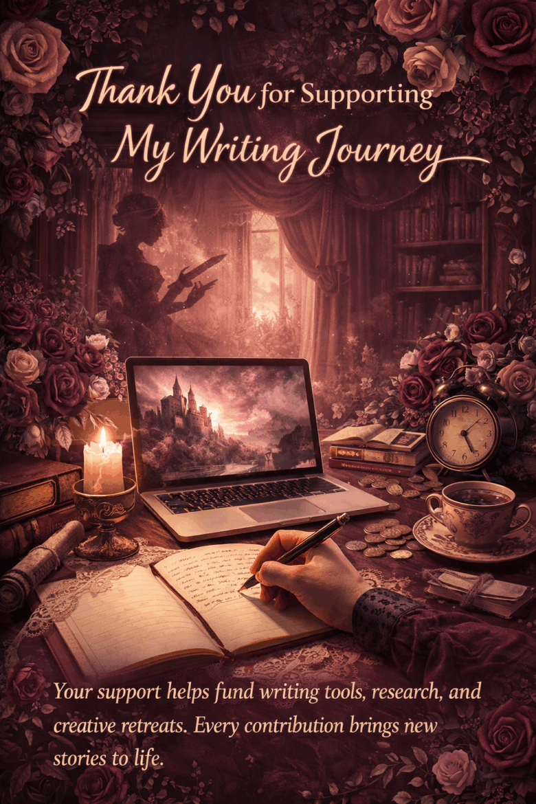Writing is both a craft and a calling, and as a graduate student author, your support helps me continue shaping the worlds, mysteries, and characters I love to create. Contributions go toward essential writing tools, research materials, workshops, and the occasional retreat that allows me to write deeply and without interruption. Every donation is a meaningful investment in the stories still waiting to be told. Thank you for helping bring them to life.